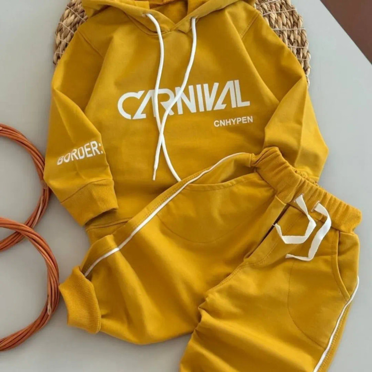 ست کارنیوال با جنس دورس لاکرادار عالی، مناسب برای کودکان ۱۲ ساله. رنگ بندی شامل خردلی، نارنجی، سبز صدری و مشکی.