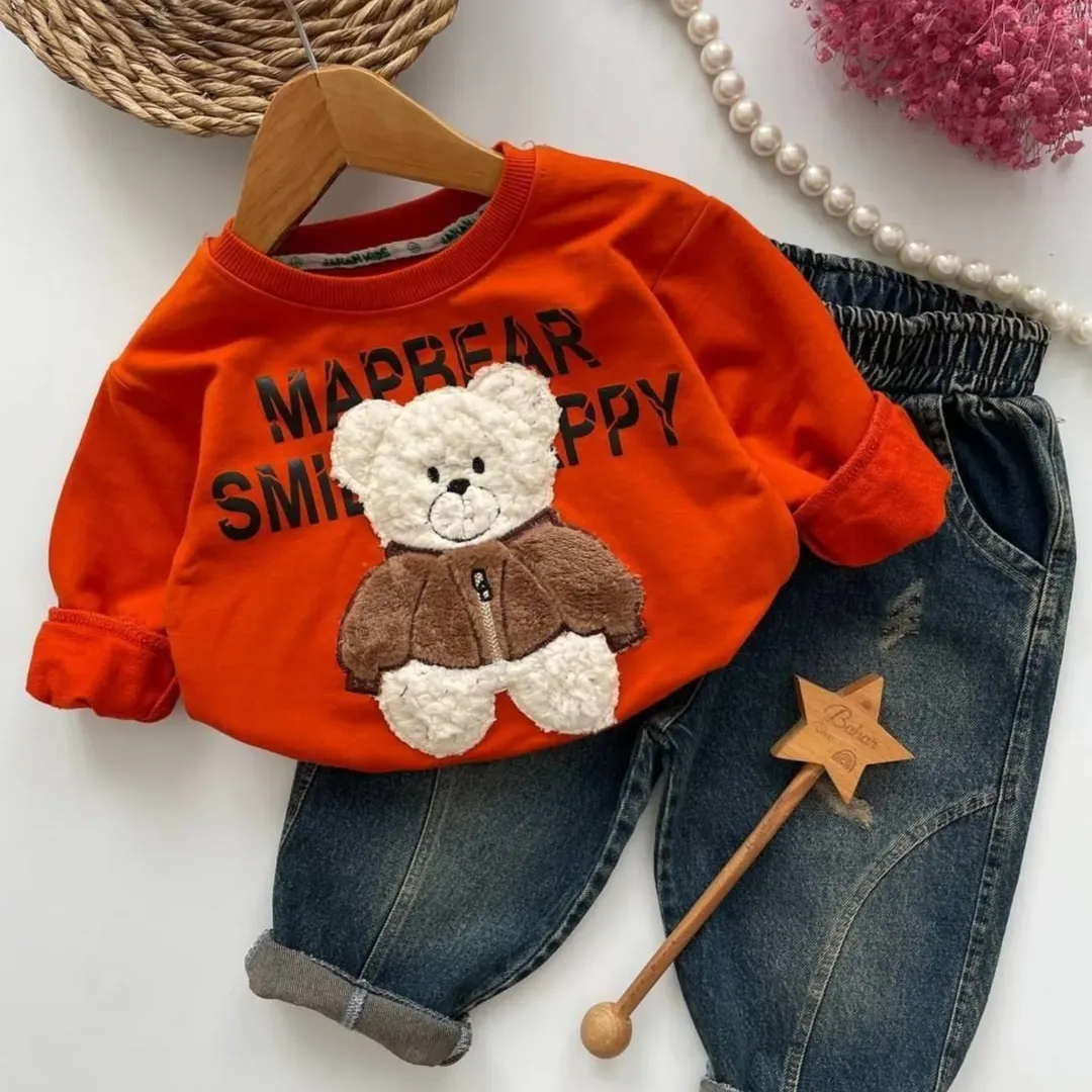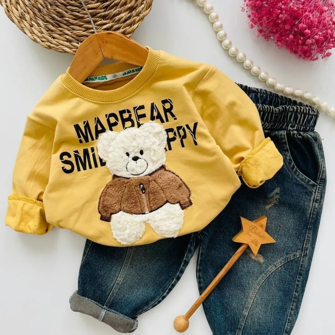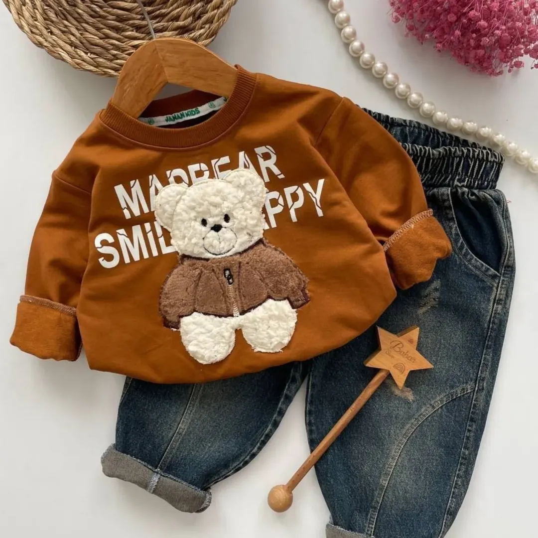 جنس بلوز:پنبه دورس دونخ عاالی جنس شلوار:جین گرم بالا تضمین چاپ،پارچه و دوخت طرح چاپ زول عالی جلو و پشت شلوار جیب دارد دوخت فوق العاده تمیز
